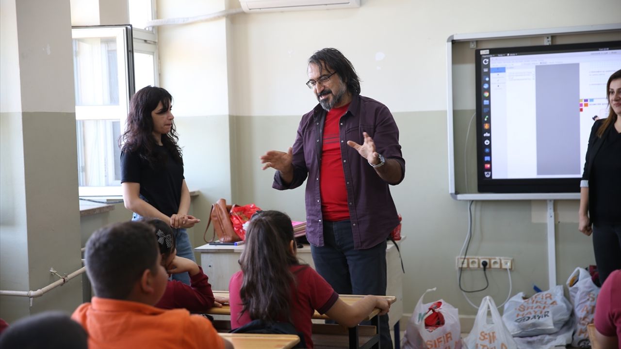 Perincek ve gönüllüler, kentteki konteyner kentlerde kalan çocuklara kitap ulaştırdı, İskenderun ilçesindeki Suçıkağı Paşakaraca İlkokulu/Ortaokulu'ndaki öğrencilere kırtasiye malzemesi hediye etti.