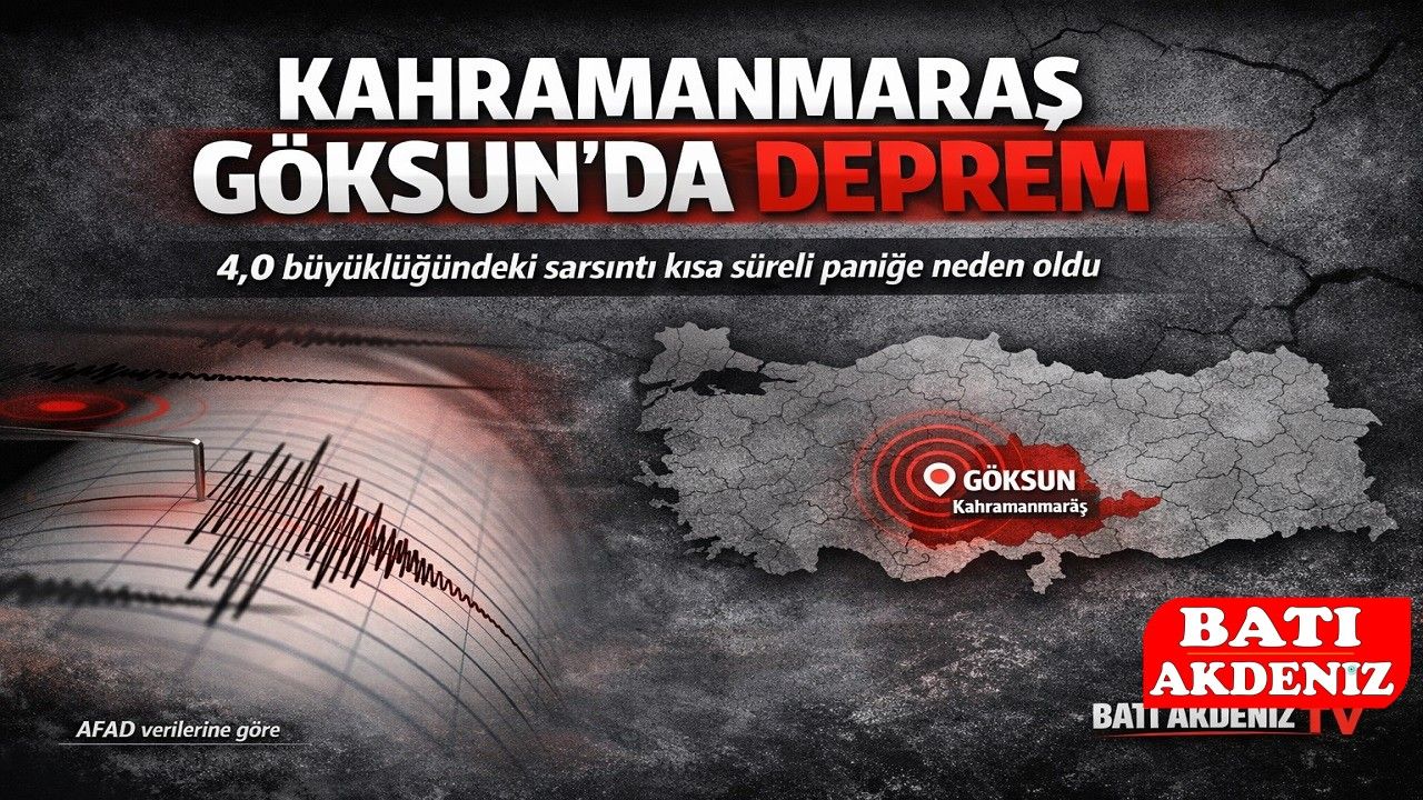 Kahramanmaraş’ın Göksun ilçesinde 4,0 büyüklüğünde deprem meydana geldi. Sarsıntı, ilçe merkezi ve çevre mahallelerde hissedildi.