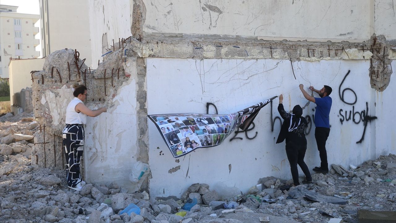 Aileler pankartlarla Dulkadiroğlu ilçesindeki Sait Bey Sitesi’nin enkaz alanında bir araya geldi.