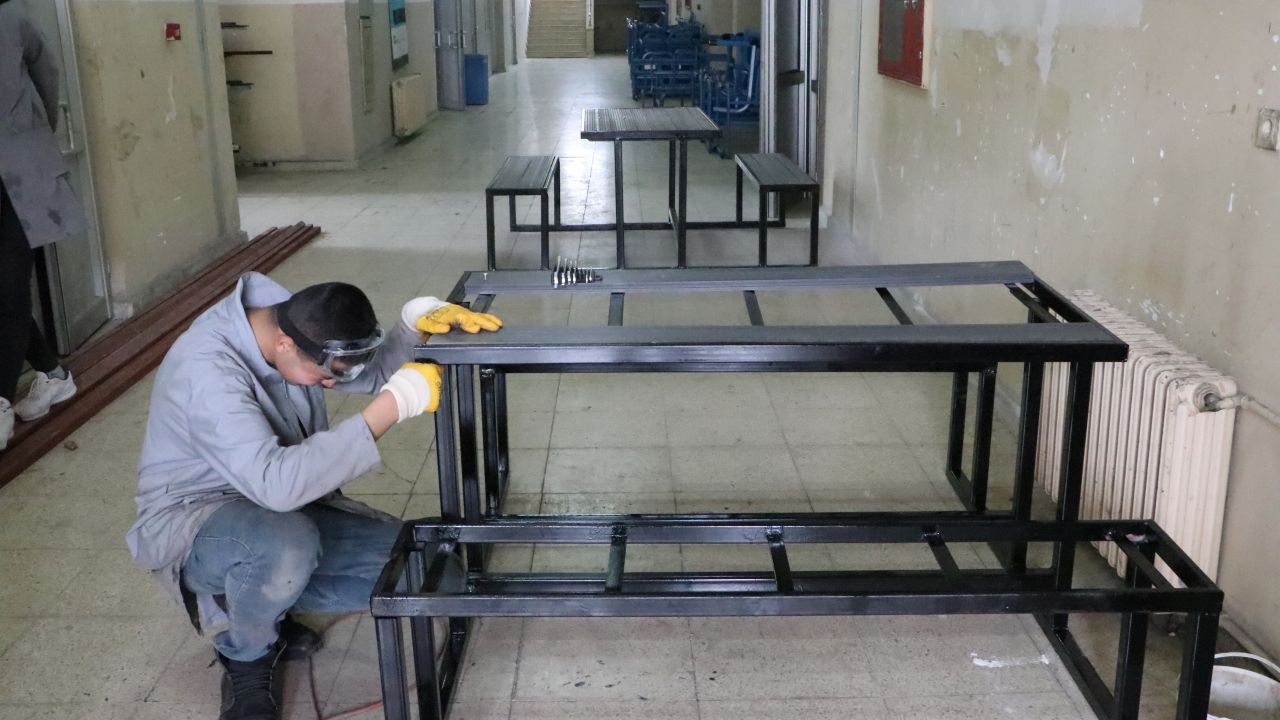 Dulkadiroğlu İlçe Milli Eğitim Müdürü Hüseyin Mart da depremden sonra 2 bin 500 okul sırasının üretimini yapan meslek lisesinde şimdi de bank üretiminin yapılacağını kaydetti.