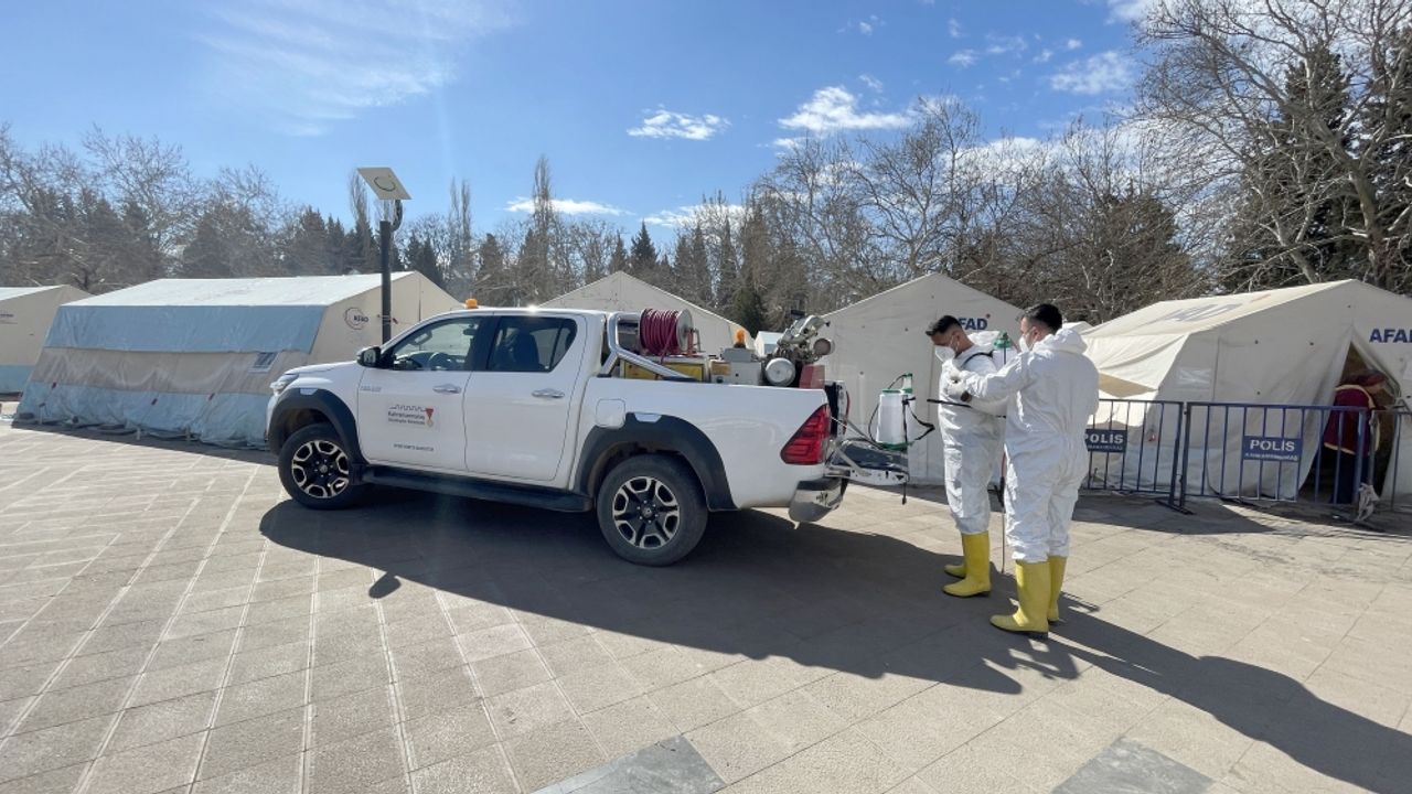 KAHRAMANMARAŞ (AA) - "Asrın felaketi" olarak nitelenen 6 Şubat'taki depremlerin merkez üssü Kahramanmaraş'ta, depremzedelerin barındığı çadır ve konteyner kentler başta olmak üzere ortak yaşam alanlarında dezenfeksiyon çalışması yürütülüyor.