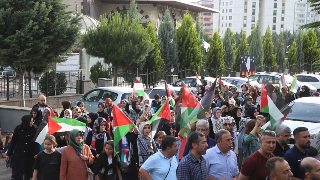 Katılımcılar, ellerinde Türk ve Filistin bayraklarıyla Necip Fazıl Kısakürek Kültür Merkezi'ne kadar yürüdü.