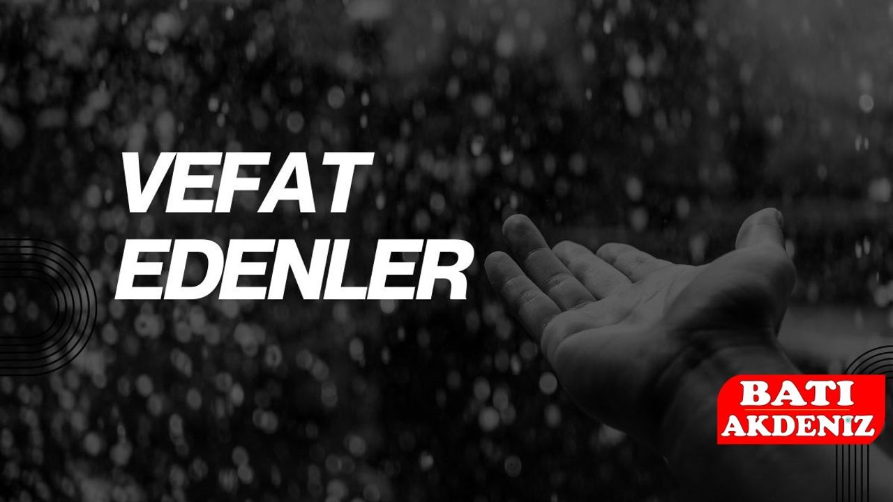 Cenazesi, ikindi namazına müteakiben Antalya Altınova Mezarlığı’na defnedilecektir.