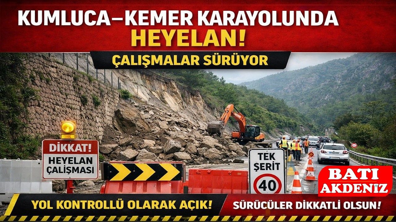 Antalya’nın Kumluca–Kemer karayolunda TÜVTÜRK yakınlarında yaşanan heyelan sonrası Karayolları ekipleri bölgede çalışma başlattı. Toprak ve kaya düşmesi riski nedeniyle yolun bazı kesimlerinde güvenlik önlemleri artırılırken, ulaşım kontrollü şekilde sağlanıyor.