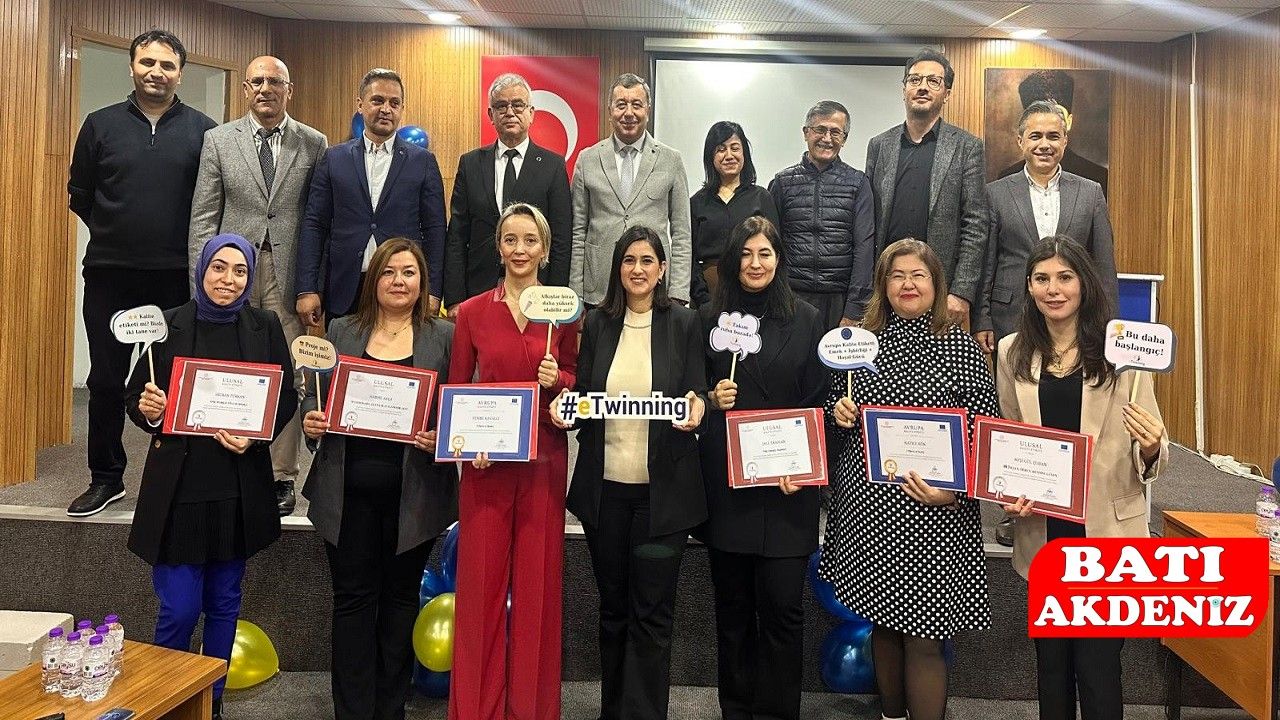Törende toplam 7 öğretmene belgeleri takdim edilirken, öğretmenler adına konuşan Kumluca Sosyal Bilimler Lisesi öğretmeni Hatice Kök, eTwinning projelerinin öğrencilerin yabancı dil gelişimi ve kültürlerarası etkileşim açısından katkı sağladığını ifade etti.