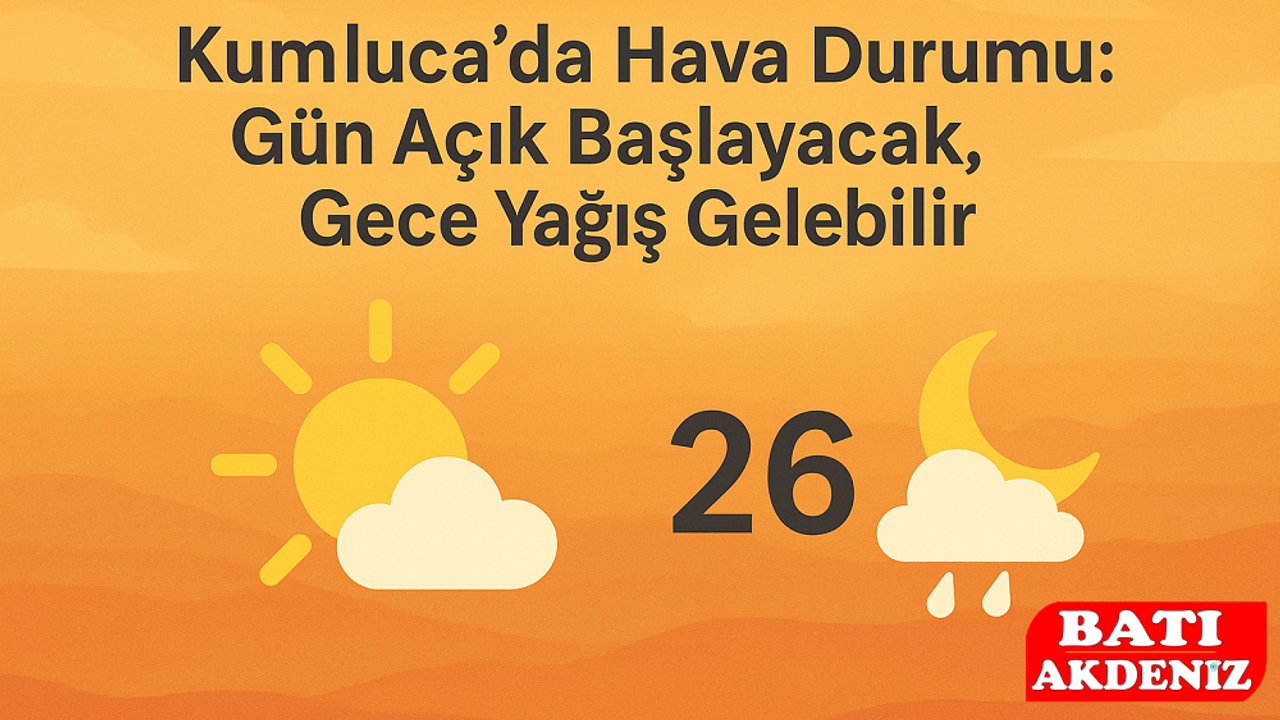 Kumluca’da gün içerisinde açık ve az bulutlu bir hava hakîm olacak. Akşam saatlerinden itibaren bulutlanma artarken, gece saatlerinde yer yer hafif sağanak yağış bekleniyor.