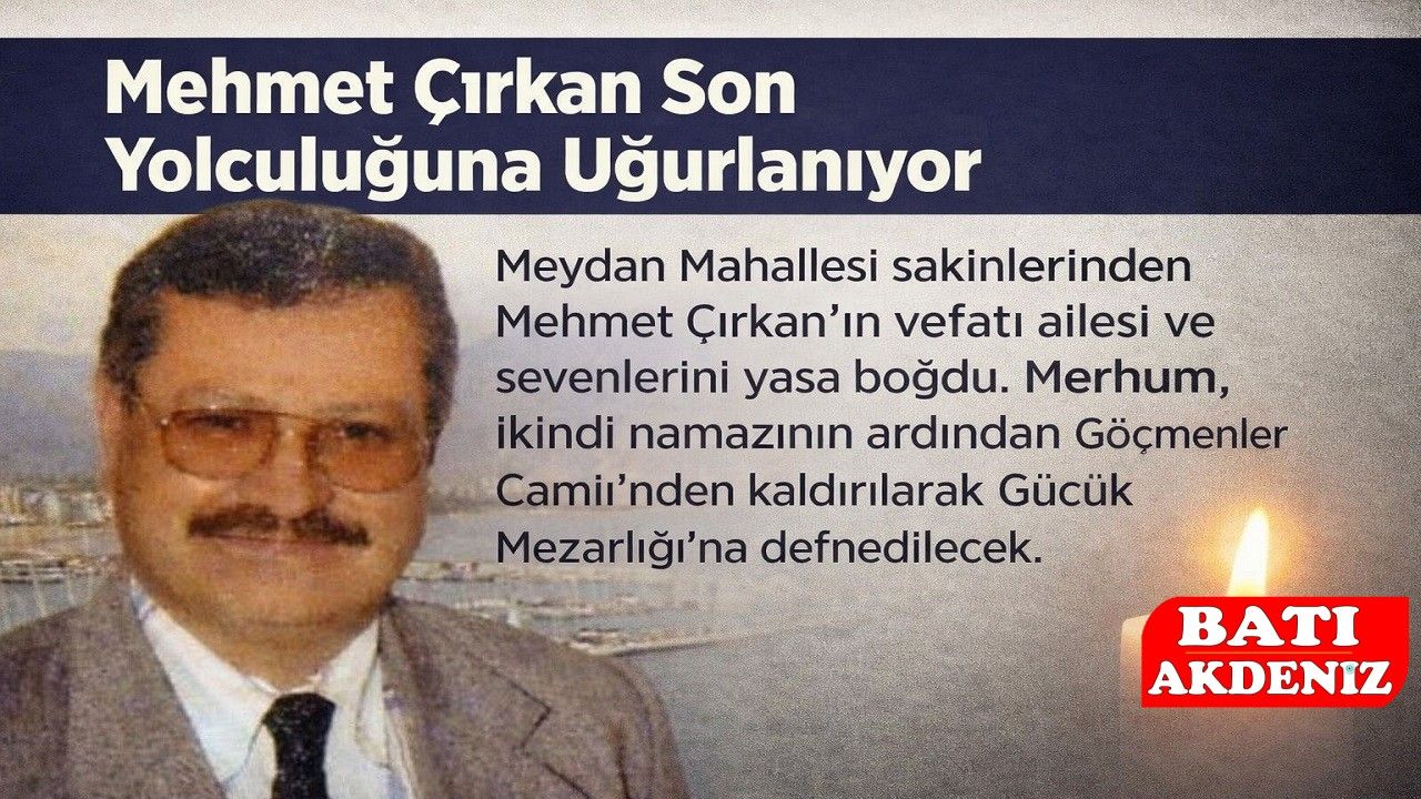 Merhum Mehmet Çırkan’ın cenazesi, ikindi namazına müteakiben Göçmenler Camii’nde kılınacak cenaze namazının ardından Gücük Mezarlığı’na defnedilecek.