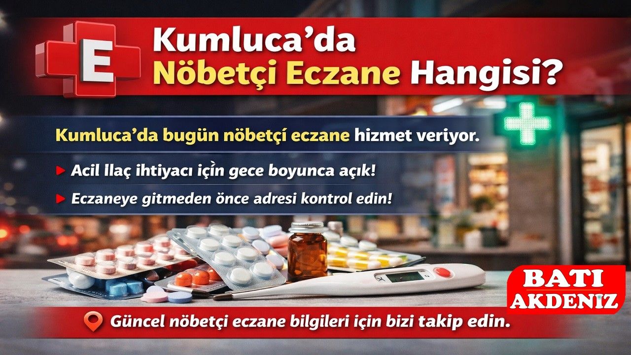 Antalya’nın Kumluca ilçesinde nöbetçi eczane bilgileri belli oldu. İlçede bugün mesai saatleri dışında da hizmet verecek olan nöbetçi eczane, acil ilaç ihtiyacı olan vatandaşlara gece boyunca açık olacak. Yetkililer, vatandaşların eczaneye gitmeden önce adres ve iletişim bilgilerini kontrol etmeleri konusunda uyarıda bulundu.