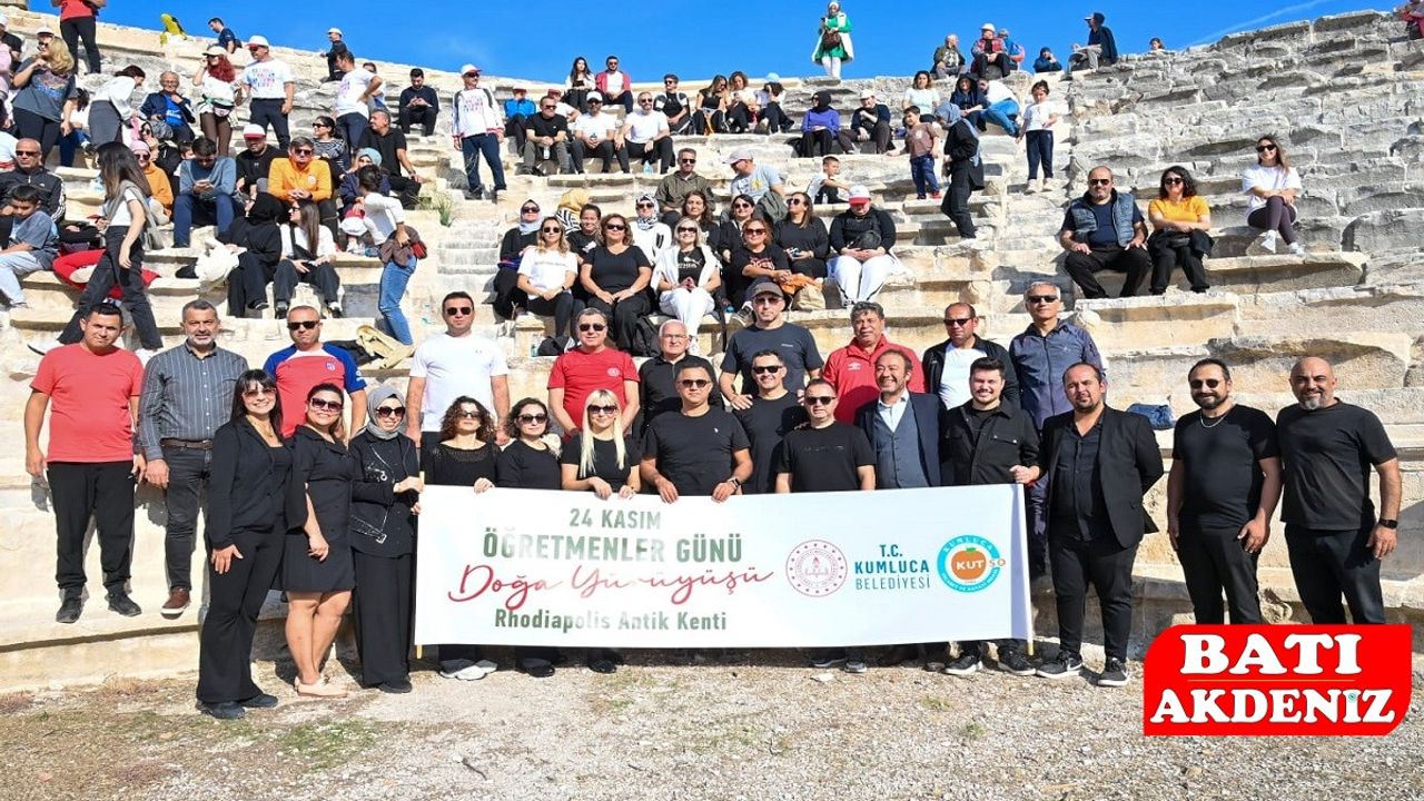 24 Kasım Öğretmenler Günü kapsamında Kumluca Belediyesi, Kumluca İlçe Milli Eğitim Müdürlüğü ve Kumluca Ticaret ve Sanayi Odası (KUTSO) iş birliğiyle anlamlı bir etkinlik düzenlendi. Öğretmenlere özel hazırlanan doğa yürüyüşü, Kumluca Hükümet Konağı önünden başlayarak Rhodiapolis Antik Kenti’nde son buldu.