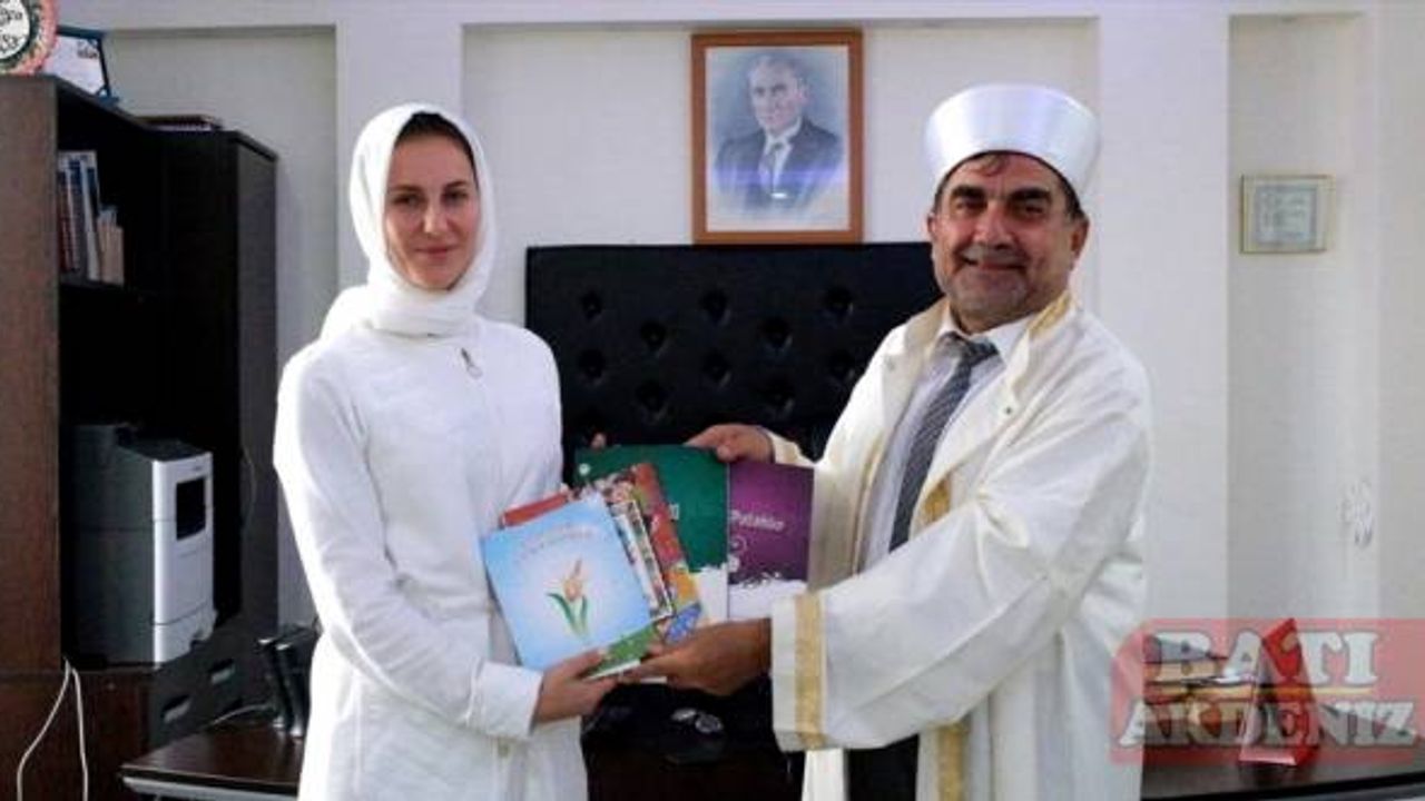 MERSİN (AA) - Mersin'in Mut ilçesinde Müslüman olan Macar vatandaşı Eszter Varga'ya (29) Kur'an-ı Kerim hediye edildi.