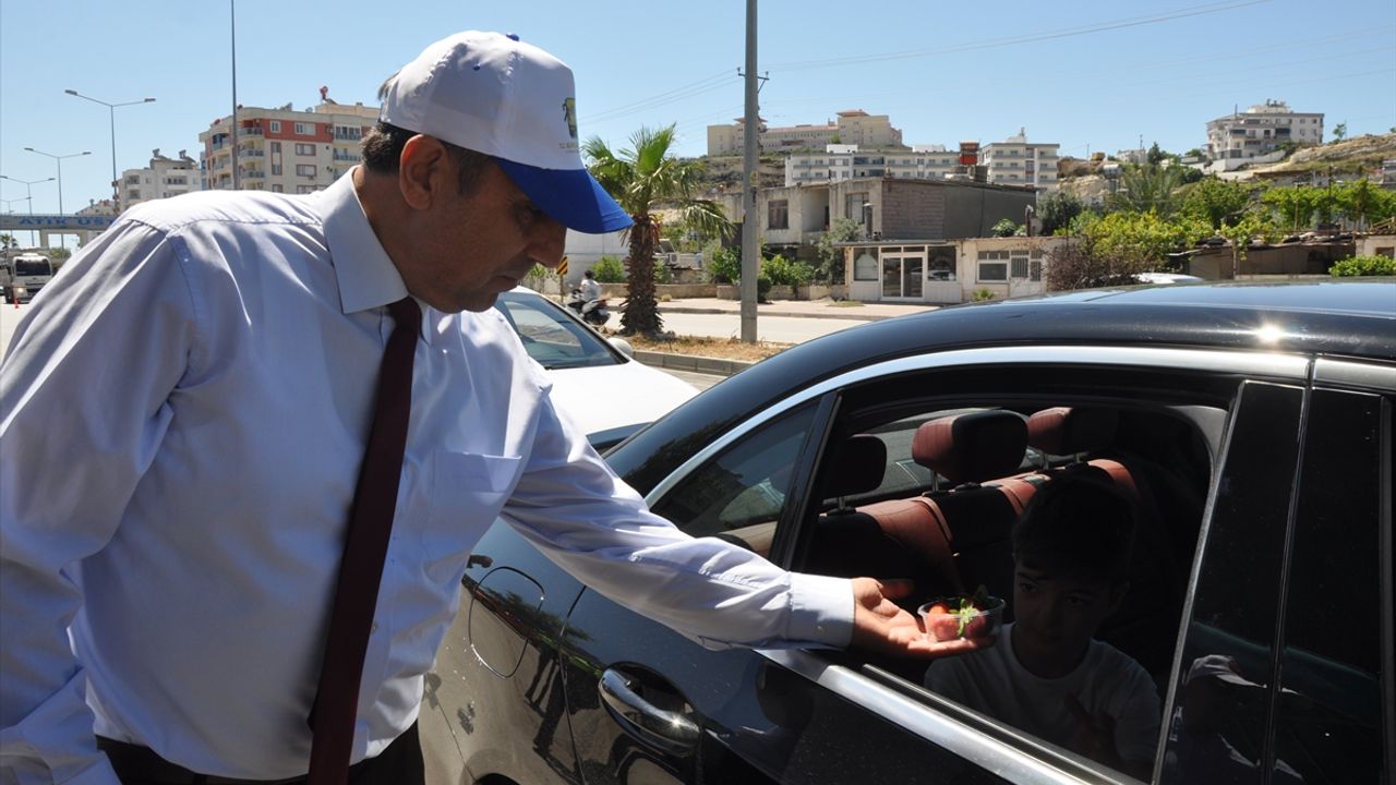 MERSİN (AA) - Mersin'in Silifke ilçesinde Karayolu Güvenliği ve Trafik Haftası dolayısıyla sürücülere bilgilendirme yapılırken çilek ve lokum ikramında bulunuldu.