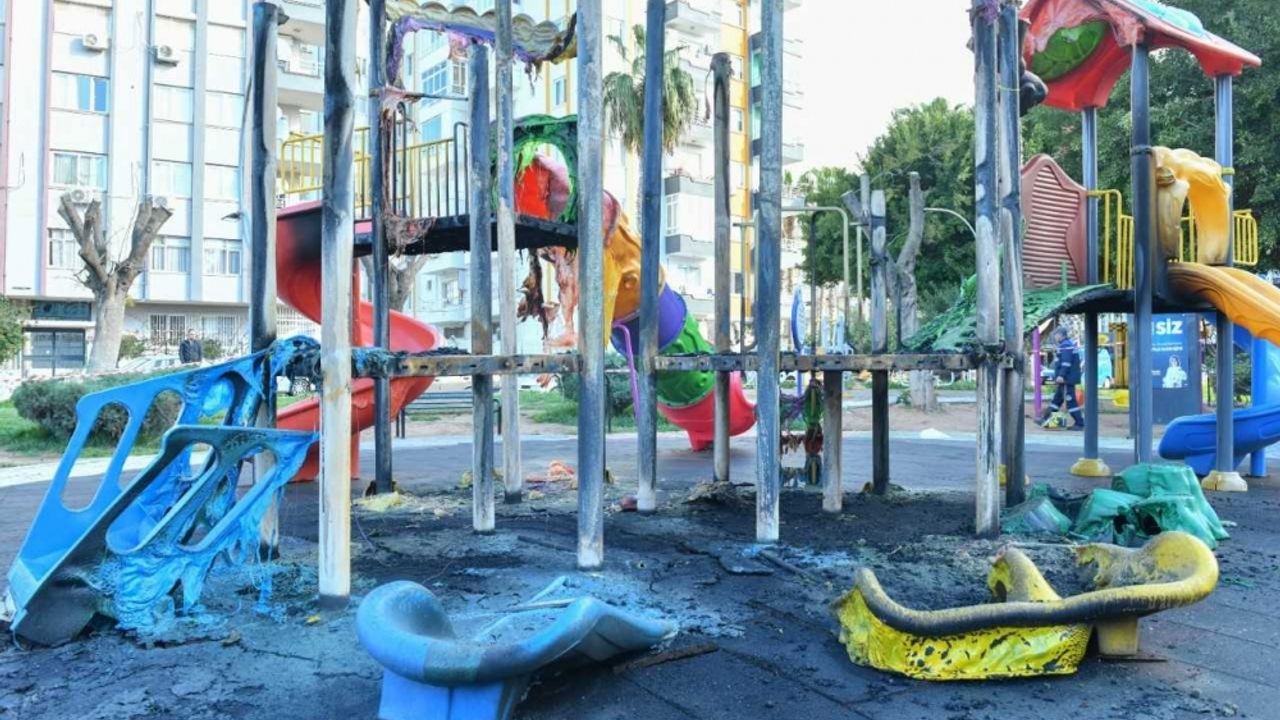 MERSİN (AA) - Mersin'in Yenişehir ilçesinde, ateşe verilen çocuk parkındaki oyun gruplarında hasar oluştu.