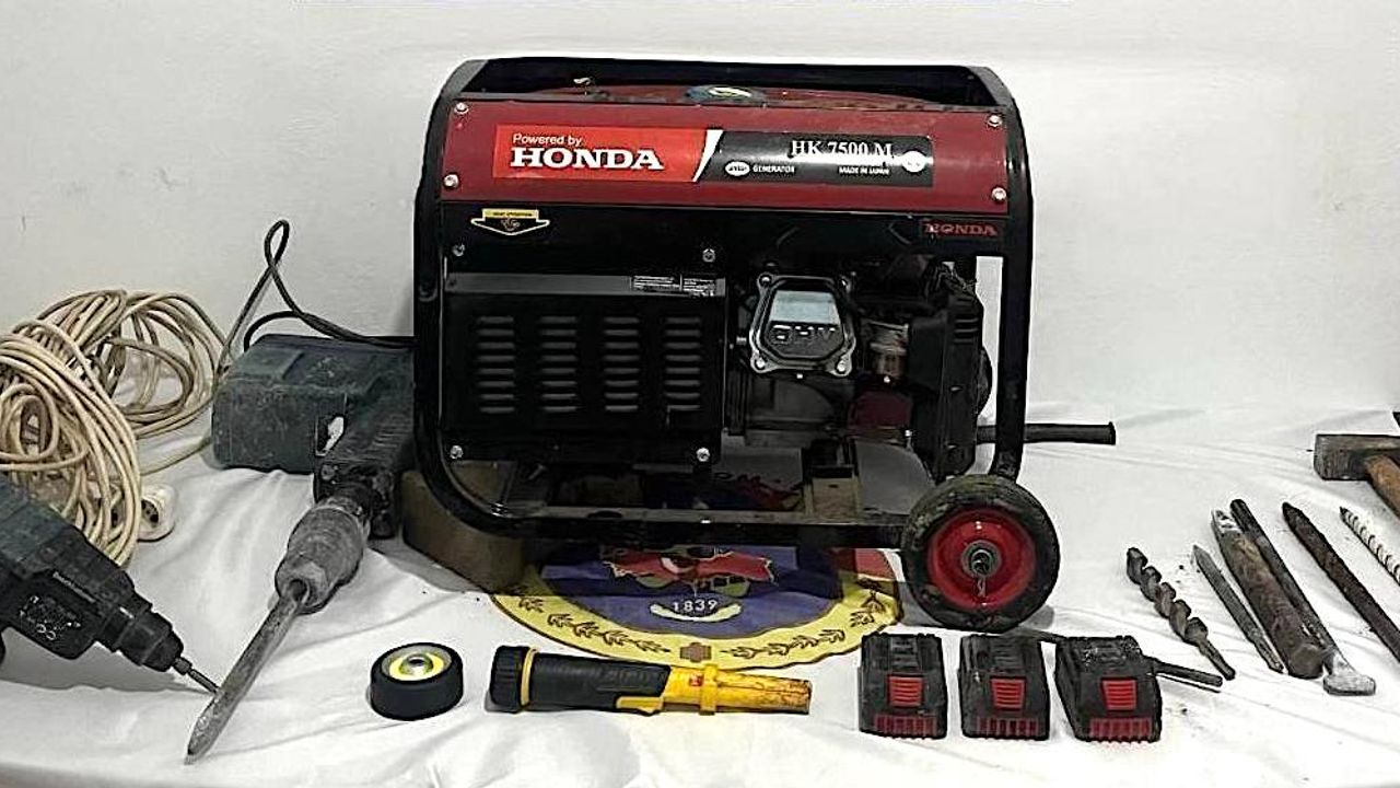 Kazı alanında jeneratör, matkap ve çekiç ele geçirildi.
