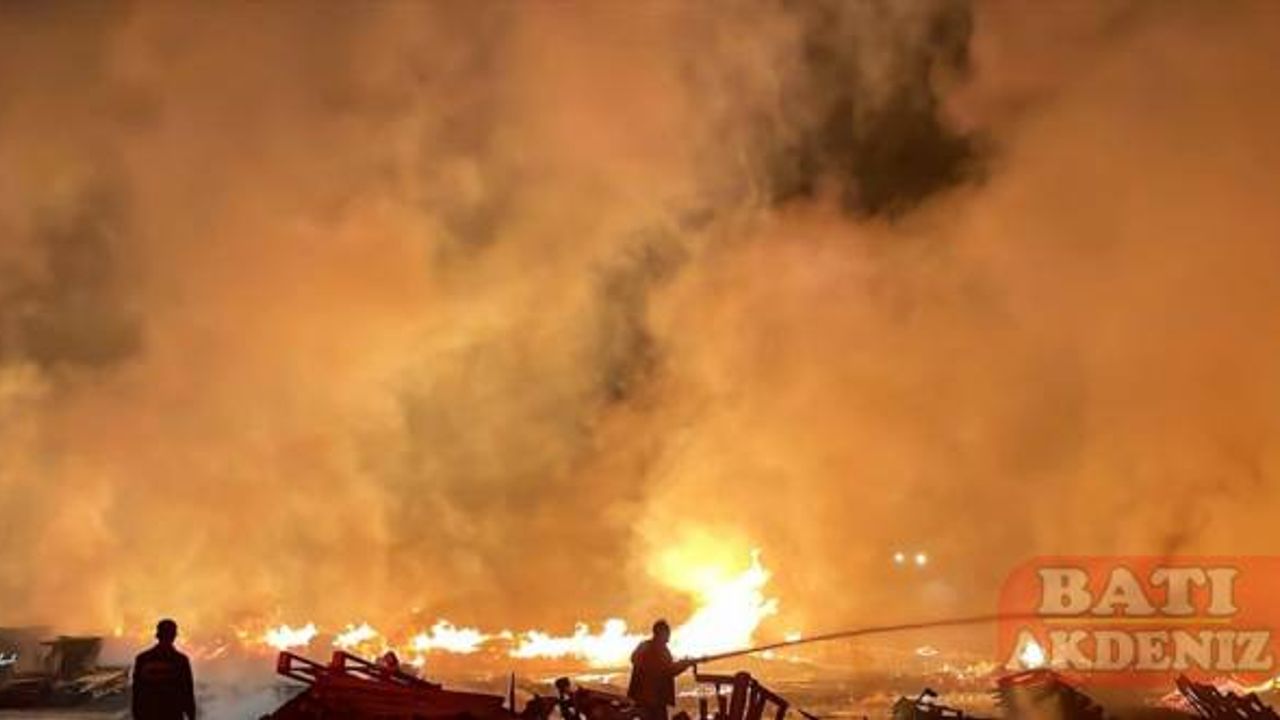 Çilek Mahallesi'ndeki palet fabrikasında henüz belirlenemeyen nedenle yangın çıktı.