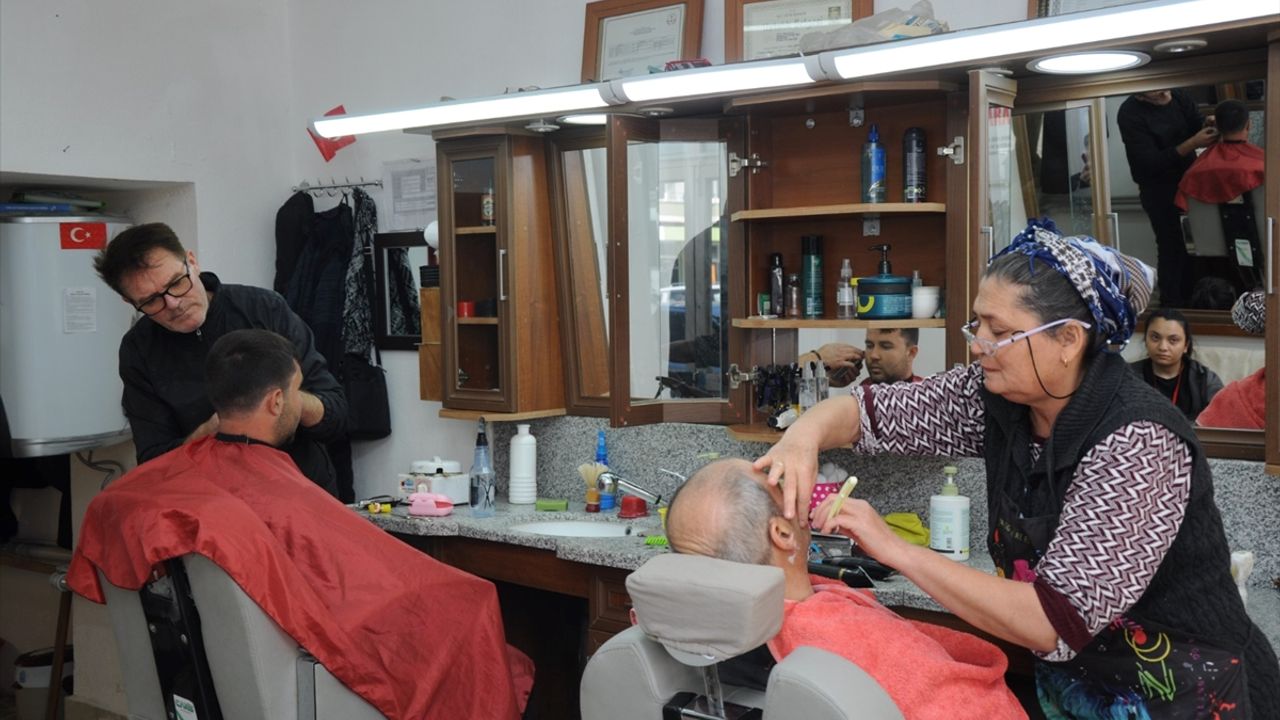 MERSİN (AA) - Mersin'in Aydıncık ilçesinde berberlik yapan karı koca, Kahramanmaraş merkezli depremlerin ardından öğrenci yurdunda misafir edilen afetzedelerin saç sakal kesimi ve cilt bakımını ücretsiz yapıyor.