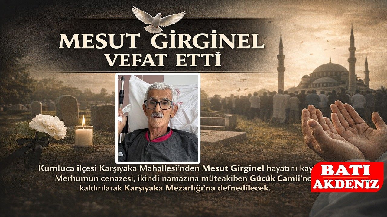 Antalya'nın Kumluca ilçesi Karşıyaka Mahallesi sakinlerinden, Kumluca Belediyesi personeli Cengiz Girginel’in babası Mesut Girginel hayatını kaybetti.