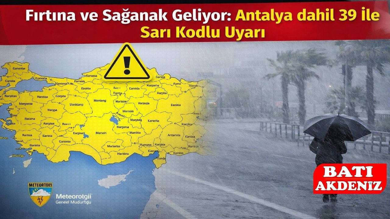 Meteoroloji Genel Müdürlüğü, Türkiye genelinde etkili olması beklenen olumsuz hava koşulları nedeniyle 39 il için sarı kodlu uyarı verdi. Yapılan son değerlendirmelere göre, birçok bölgede kuvvetli sağanak yağış ve fırtına etkili olacak.