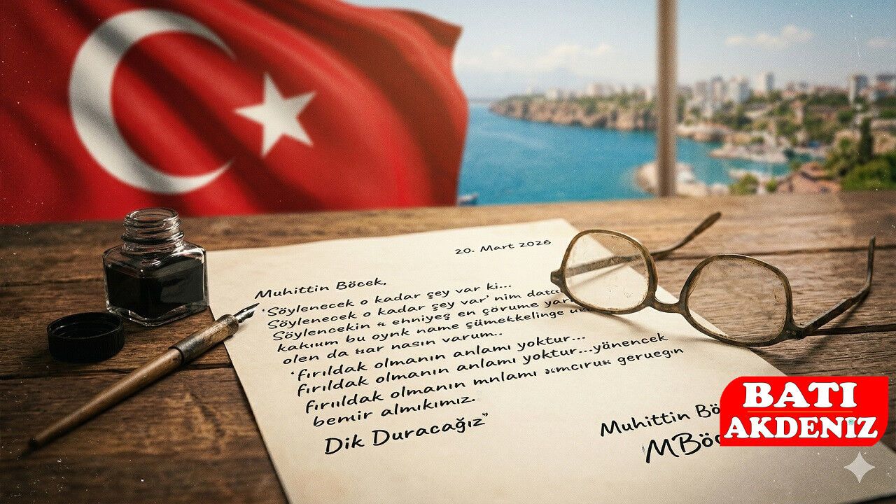 Antalya siyasetinde sıcak saatler yaşanıyor. Muhittin Böcek tarafından paylaşılan el yazısı mektup, kamuoyunda adalet tartışmalarını yeniden alevlendirdi. Özellikle Antalya Büyükşehir Belediyesi çevresinde başkanın "dik duracağız" mesajı yankılanmaya devam ediyor.