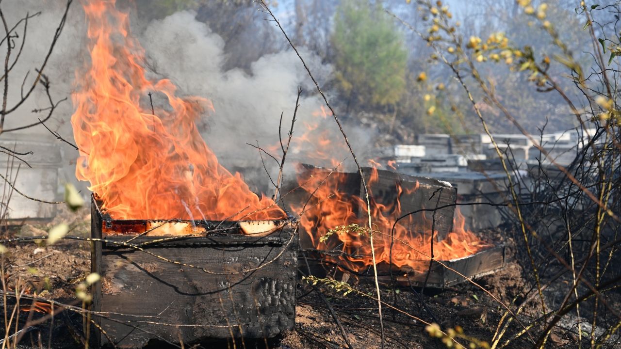 İlk tespitlere göre yaklaşık 15 dekarlık alanın zarar gördüğü yangından, bölgedeki bazı arı kovanlarının da etkilendiği öğrenildi.