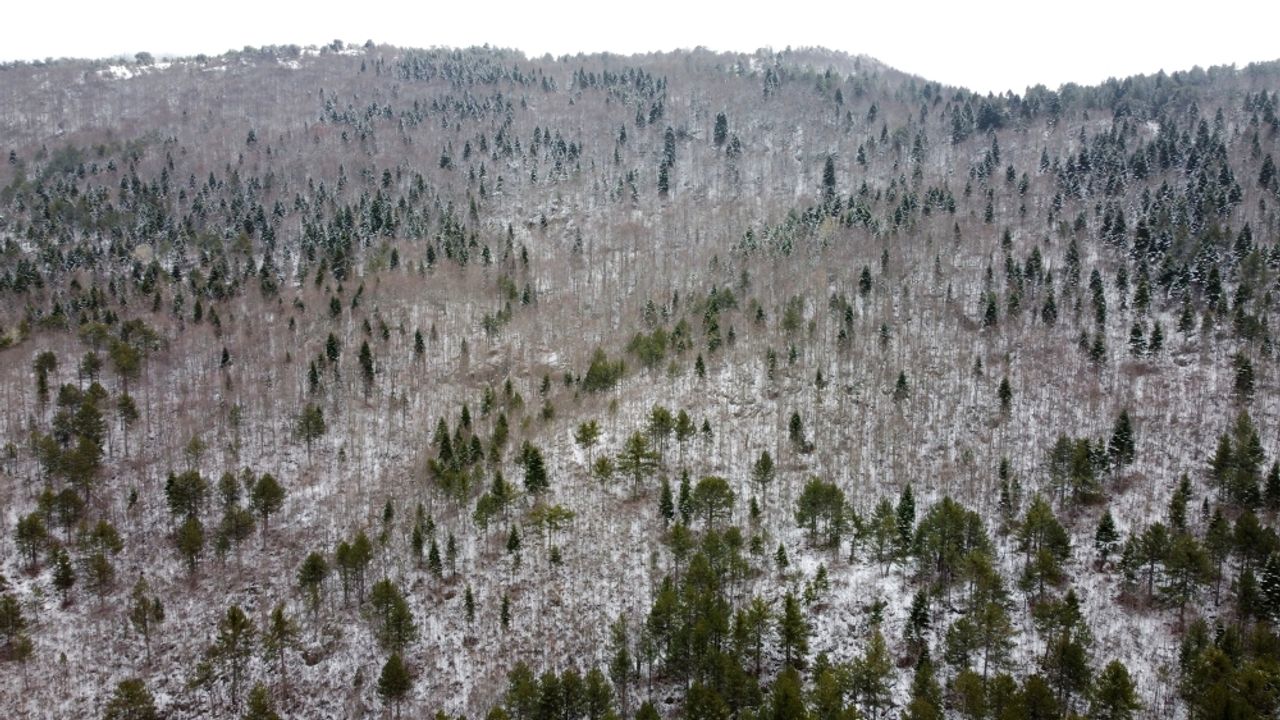 Karla kaplanan 1650 rakımlı yaylanın bazı bölümleri dronla görüntülendi.