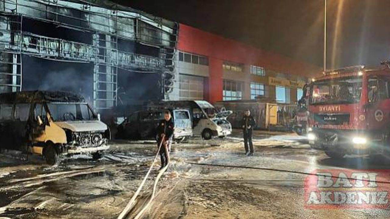 Yangında, iş yerinde tamir için bekleyen ikisi ambulans 10 araç kullanılamaz hale geldi.