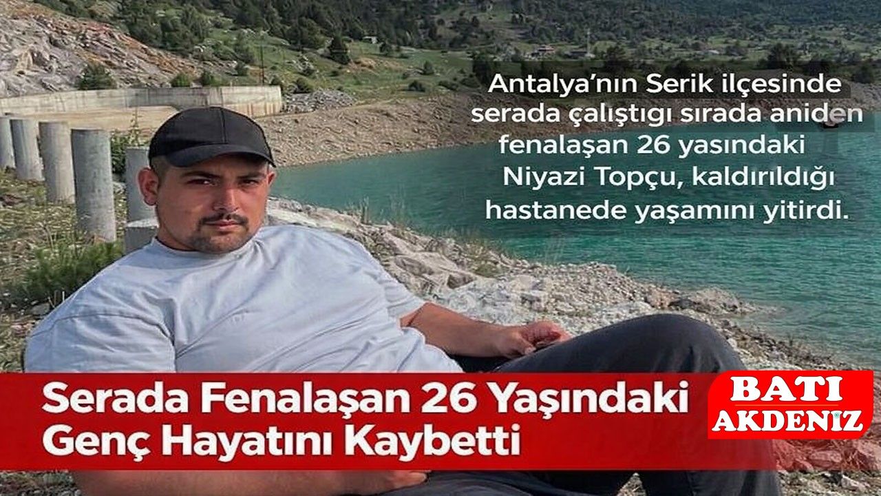 Olay, Antalya’nın Serik ilçesinde bulunan bir serada meydana geldi. Edinilen bilgilere göre, serada mesai yapan 26 yaşındaki Niyazi Topçu, aniden fenalaşarak yere yığıldı. Durumu fark eden çalışma arkadaşları hemen 112 Acil Çağrı Merkezi’ne haber verdi.