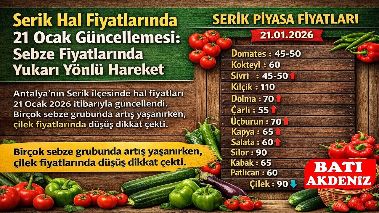 Antalya’nın önemli tarım merkezlerinden biri olan Serik’te hal piyasasında fiyatlar 21 Ocak 2026 tarihi itibarıyla yeniden şekillendi. Güncellenen listeye göre özellikle biber çeşitleri ve bazı sebzelerde yukarı yönlü hareketler öne çıktı.