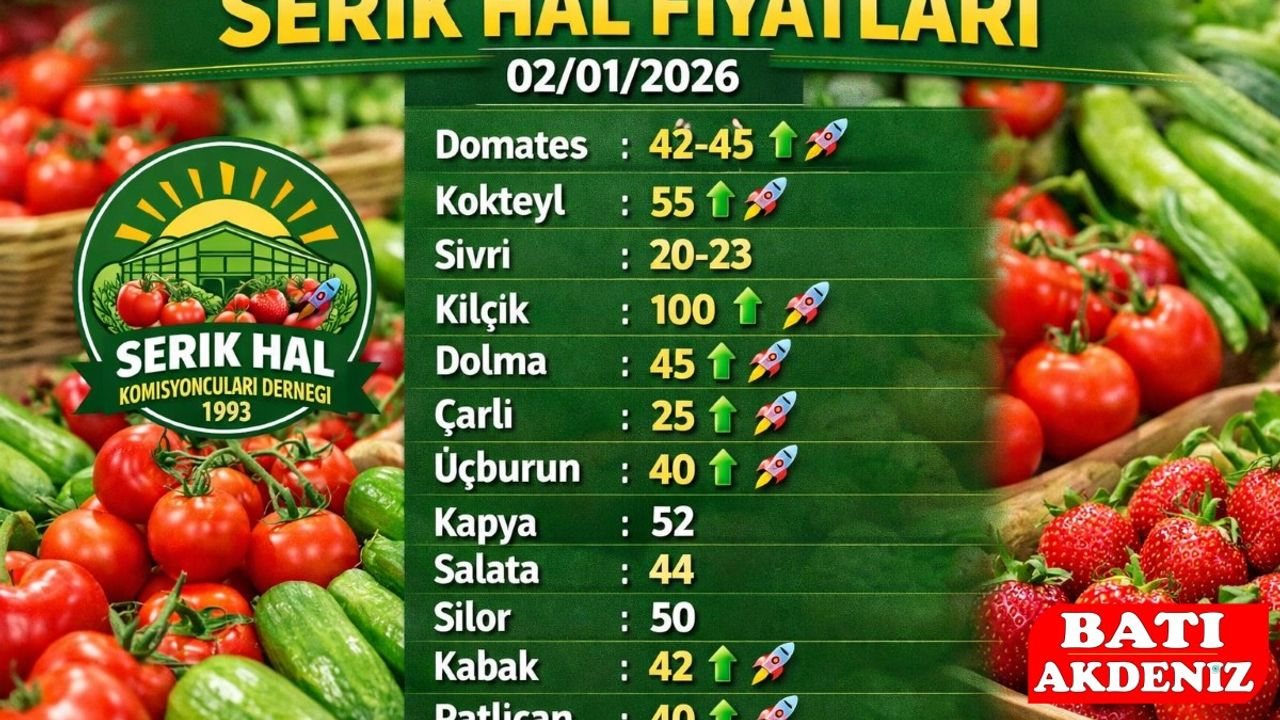 Serik Toptancı Hali’nde 02 Ocak 2026 Cuma günü itibarıyla sebze ve meyve fiyatları güncellendi. Açıklanan güncel listeye göre birçok üründe yukarı yönlü fiyat artışı yaşandığı görüldü.