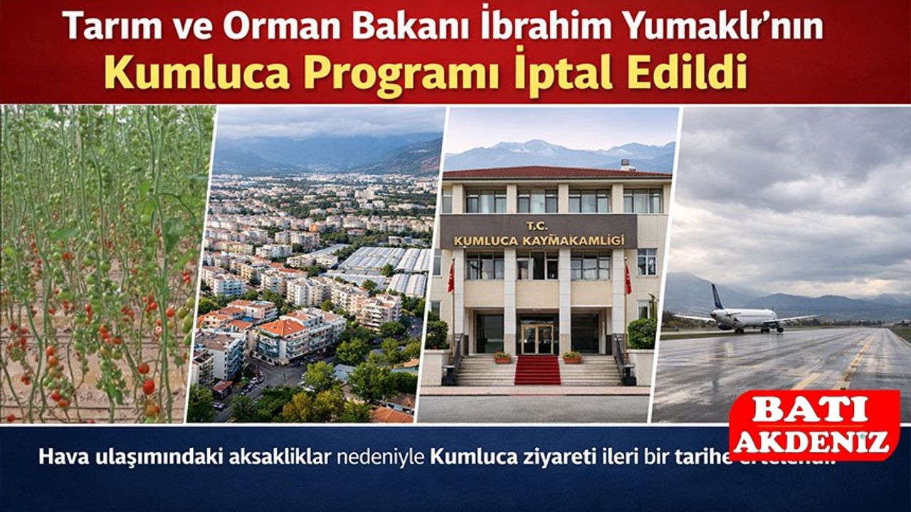 “Hava ulaşımında yaşanan sorunlar nedeniyle Tarım ve Orman Bakanımız Sayın İbrahim Yumaklı'nın Kumluca İlçemize ziyaret programı iptal edilmiş olup; Kumluca ziyaret programı ileri bir tarihte gerçekleştirilecektir. Kamuoyunun bilgisine sunulur.”
