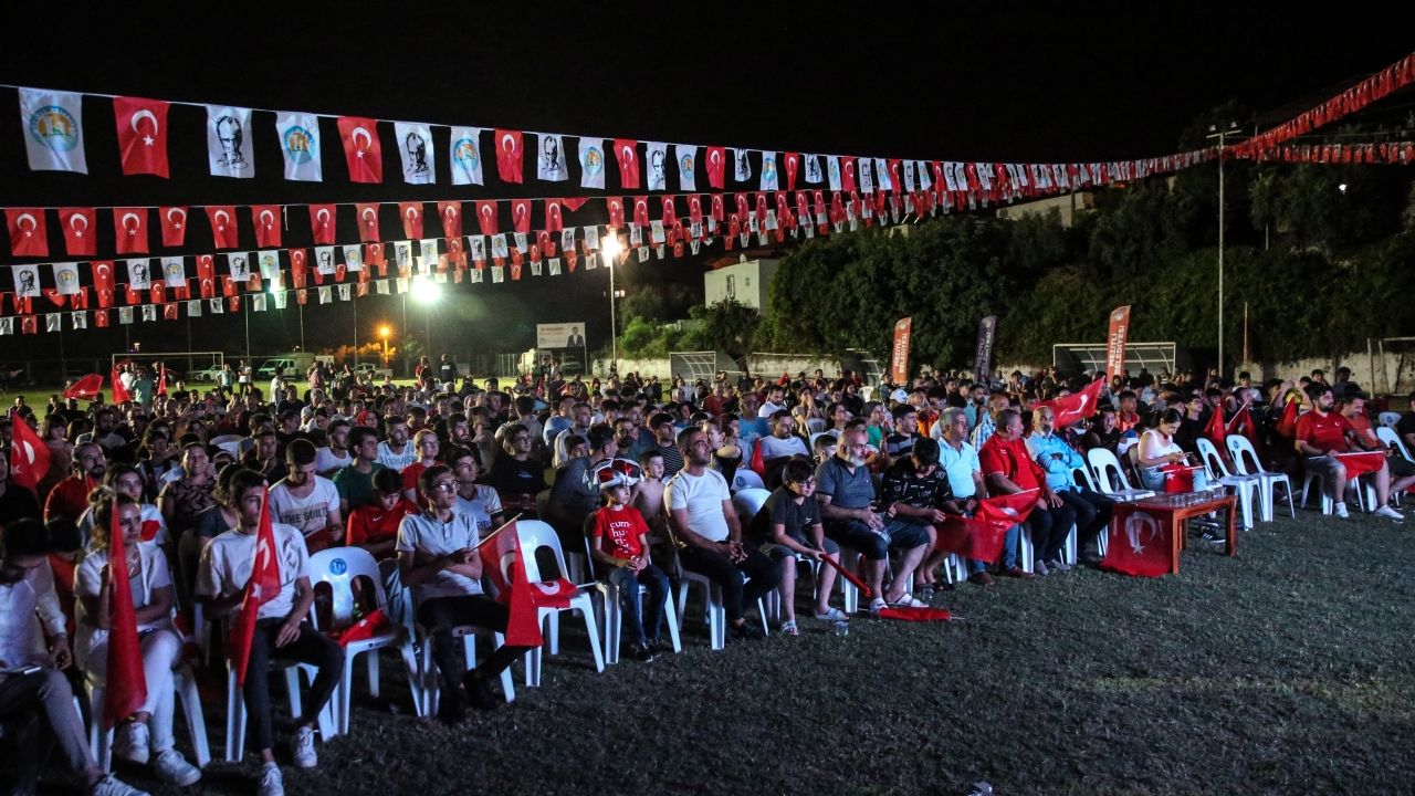 Mersin'de vatandaşlar, maçı Mezitli ilçesi Kuyuluk Mahallesi'ndeki Kuyuluk Futbol Sahası'nda Mezitli Belediyesinin kurduğu dev ekrandan izledi.