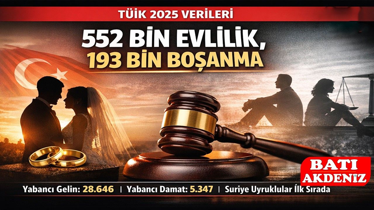 Türkiye İstatistik Kurumu’nun açıkladığı 2025 yılı evlenme ve boşanma istatistikleri, evlilik ve boşanma oranlarında dikkat çeken bir tablo ortaya koydu. Resmî verilere göre 2025 yılında Türkiye genelinde 552 bin 237 çift evlendi, aynı dönemde 193 bin 793 çift ise boşandı.