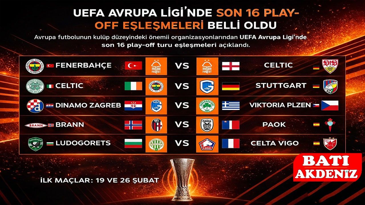İki maç üzerinden oynanacak olan son 16 play-off turu karşılaşmaları 19 ve 26 Şubat tarihlerinde yapılacak. Rakiplerini eleyen takımlar, UEFA Avrupa Ligi’nde son 16 turuna yükselme başarısı gösterecek.