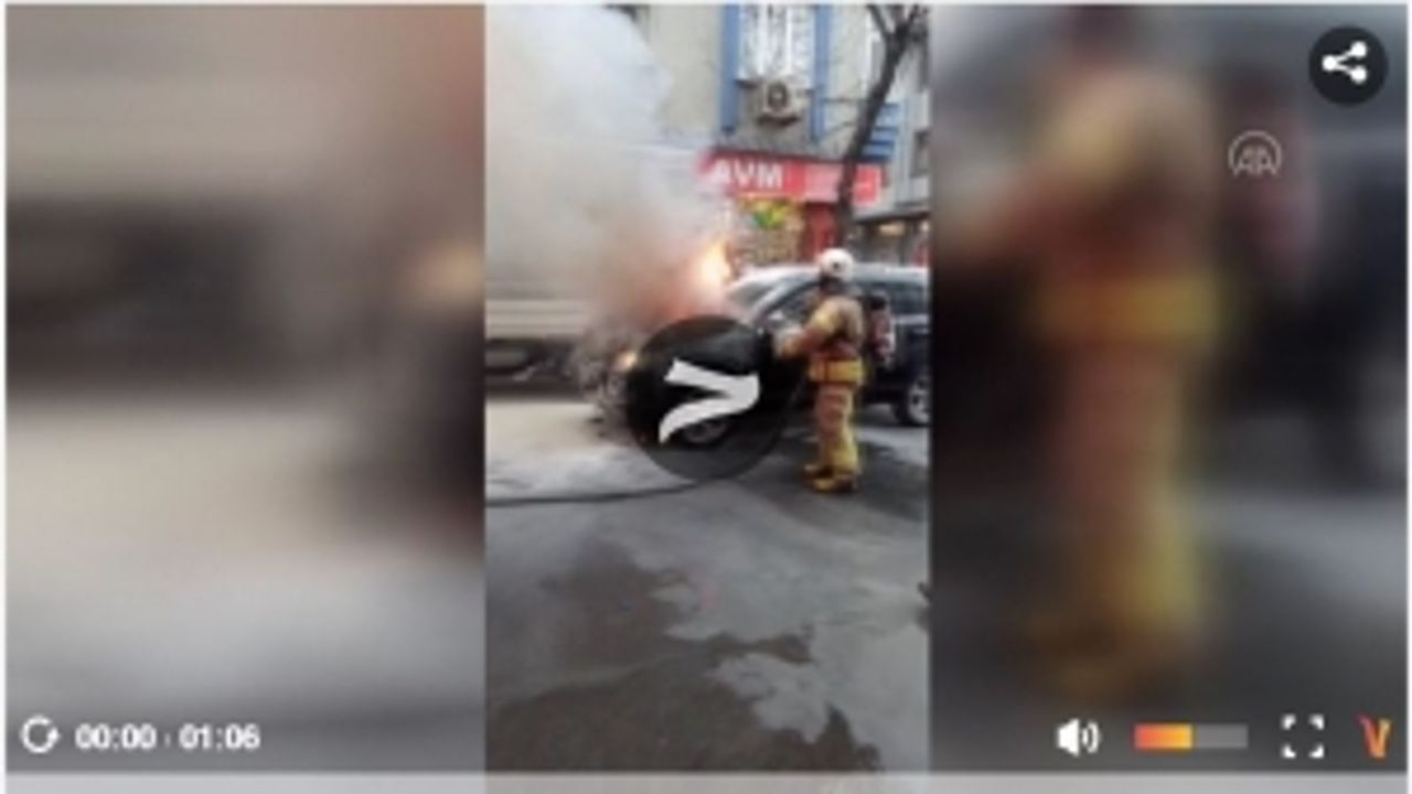 - Otomobilin yanan motor kısmından görüntüler İstanbul'da motoru alev alan otomobildeki yangın söndürüldü